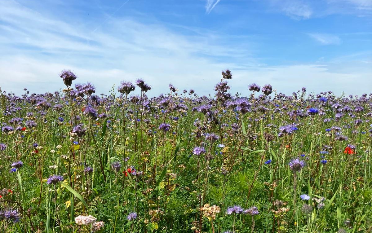 Kruidenrijke bufferstroken trekken insecten aan, versterken het landschap en ondersteunen natuurlijke plaagbestrijders.